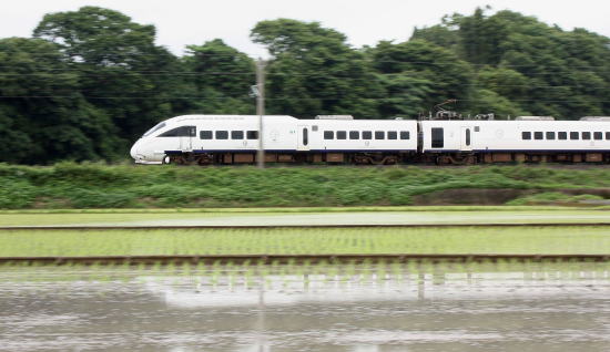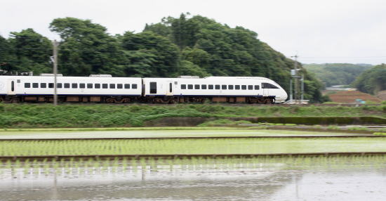 田植えの終わった水田には弱い風が流れ、白い車体が乱れる。