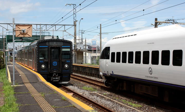 YC系(YC1+YC1001)試運転車と交換 (肥前長田駅) [220707]