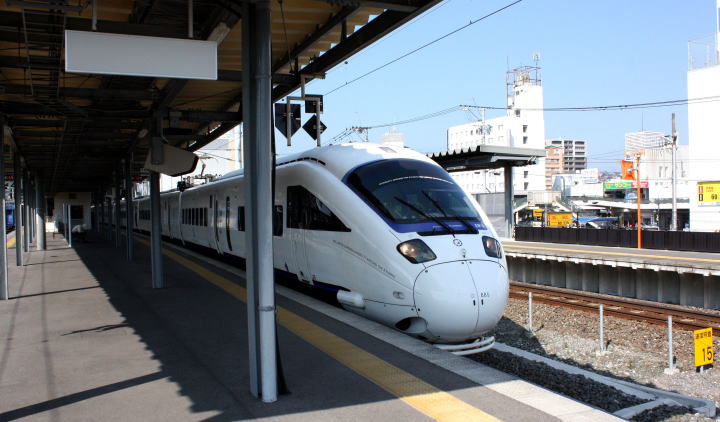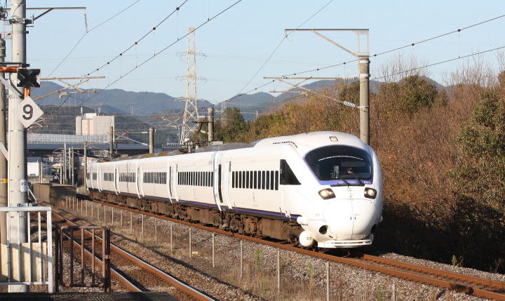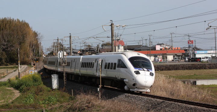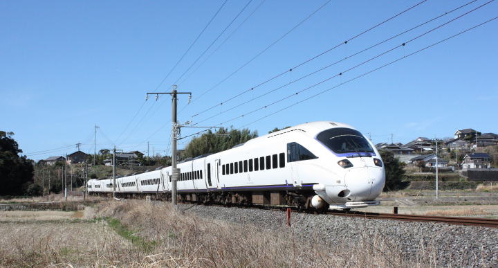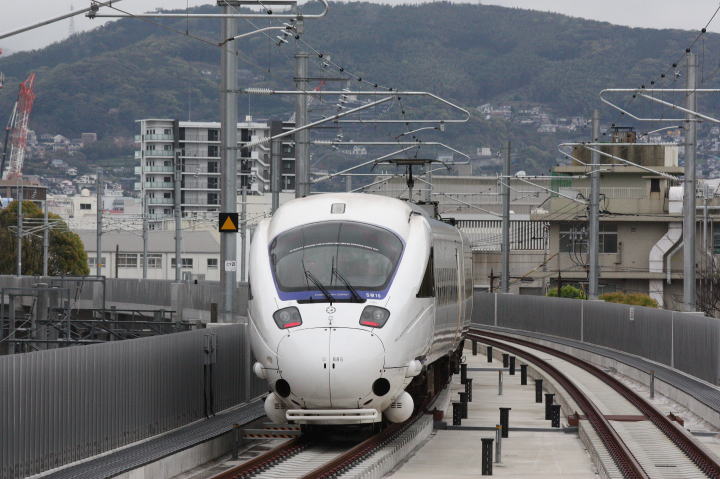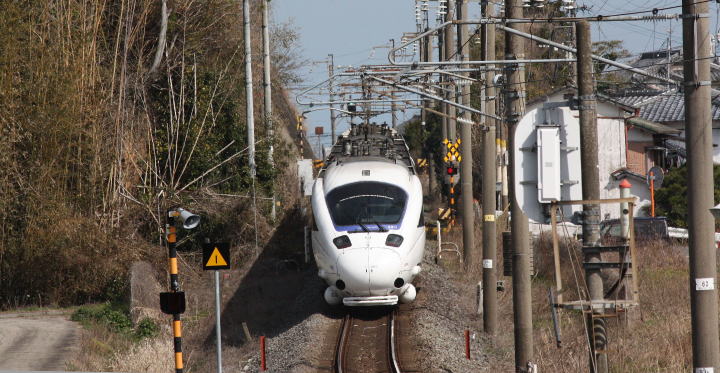 喜々津駅から諫早駅間の複線区間を高速で通過する。